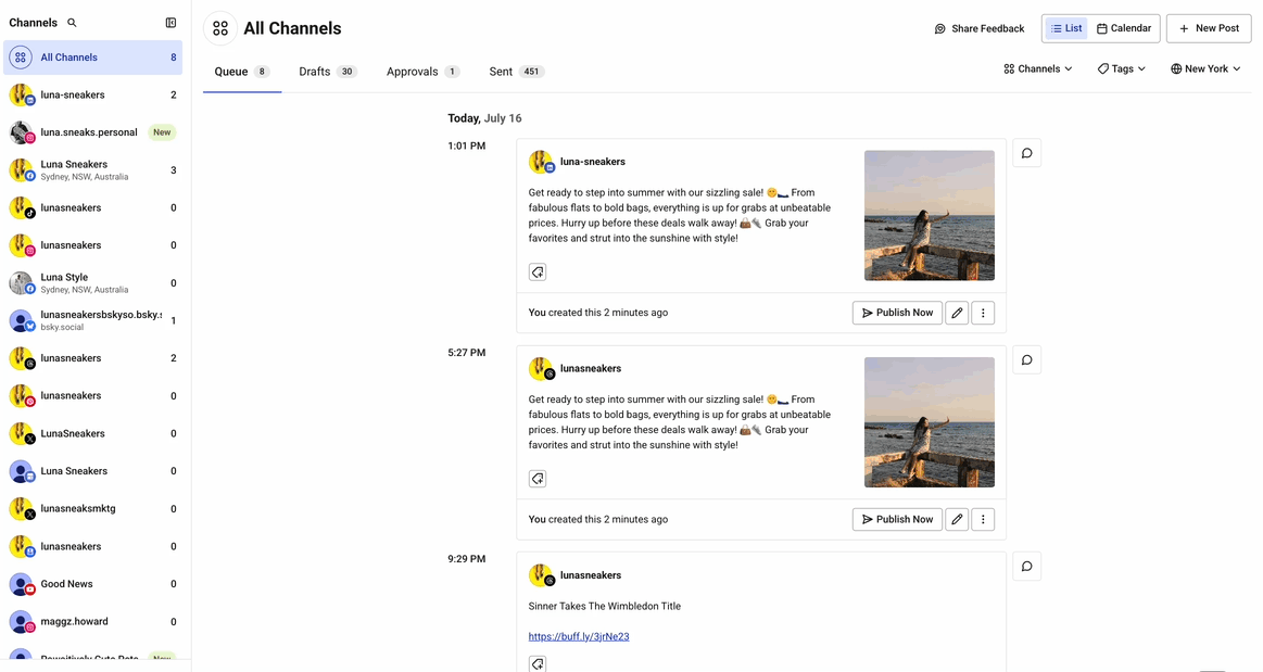 Calendar View: See all scheduled posts by date and time in a calendar format.